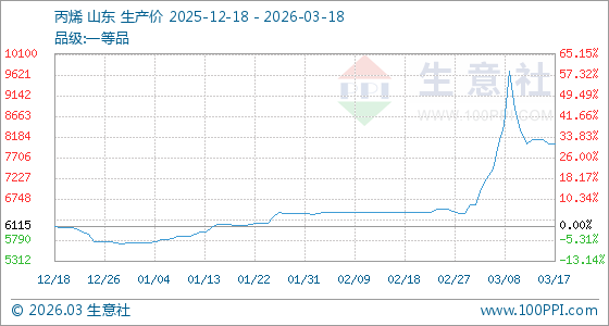 今日国内环氧氯丙烷市场延续下跌态势。山东市场主流商谈参考在13200-13400元/吨承兑出厂,较前期明显走低。据生意社监测分析系统显示,截至3月18日,生意社环氧氯丙烷基准价为13400元/吨,与本月初相比上涨8.06%。