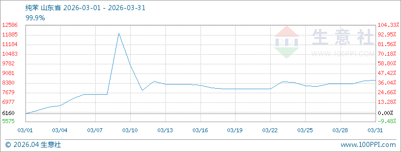 3月山东地区环己酮市场价格价格呈现出“先急涨、后高位盘整”的运行态势。上旬阶段,市场受多重利好推动快速拉升,中旬后市场受宏观以及供需变化,价格小幅回调后维持高位运行,全月累计涨幅达31.03%。