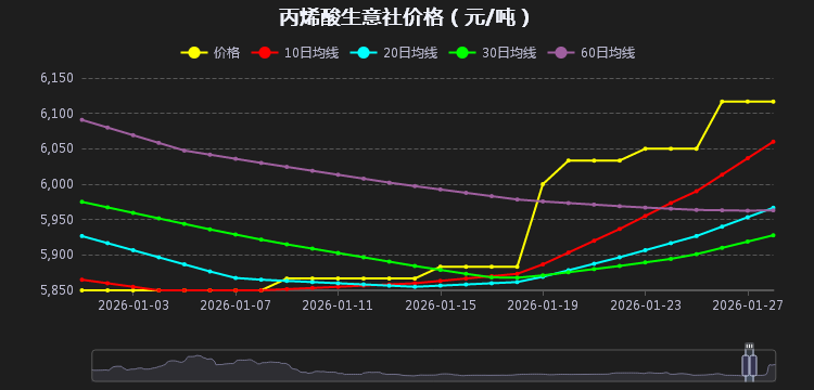 1.国内丙烯酸主力装置集中进入春季检修期,行业开工率持续低位运行,现货流通货源大幅减少,直接推动价格从1月中旬的8500元/吨区间,一路冲高至13000元/吨以上,完美匹配生意社系统中价格曲线的陡峭上行走势。