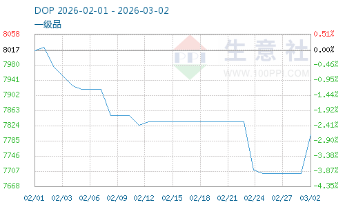 据生意社商品行情分析系统,截止3月2日,DOP价格7800.84元/吨,较3月1日DOP价格7700.84元/吨上涨,涨幅1.30%。增塑剂DOP企业开工负荷下降至59%,DOP产量下降,DOP价格上涨,苯酐需求支撑仍存。