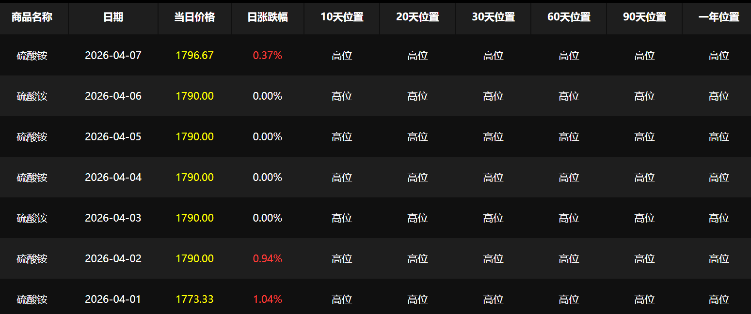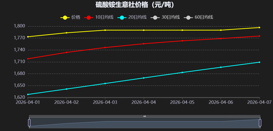 硫酸铵价格延续坚挺上涨(4.1-4.8)