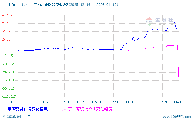 生意社甲醇(上游原料)-BDO价格走势比较图:
