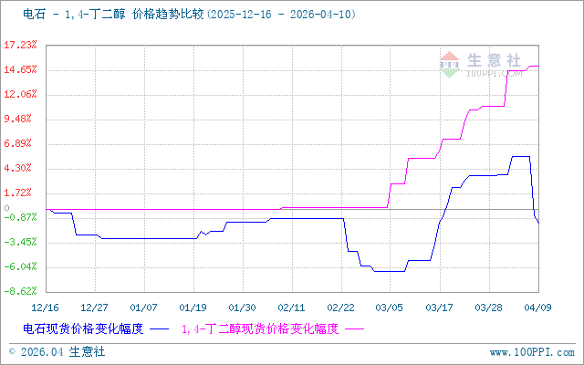 据生意社商品行情分析系统,4月3日至10日,货源供应量增加,供应端利好支撑减弱。下游行业整体开工提高,对原料消化量增加,BDO供需差距扩大。供需博弈持续,市场行情涨幅减缓。