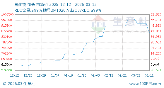 3月12日生意社氧化钕基准价为865000.00元/吨
