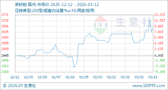 3月12日生意社菜籽粕基准价为2670.00元/吨