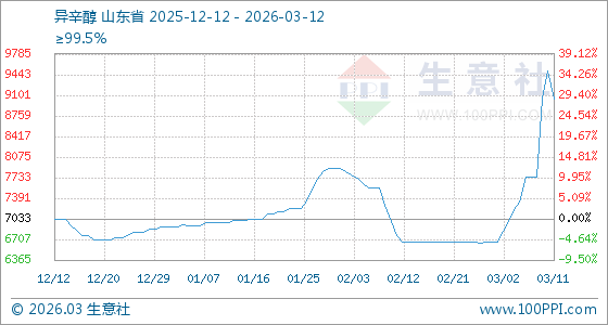 3月12日生意社异辛醇基准价为9033.33元/吨