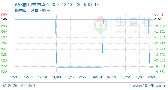 3月13日生意社碘化钠基准价为522.50元/千克