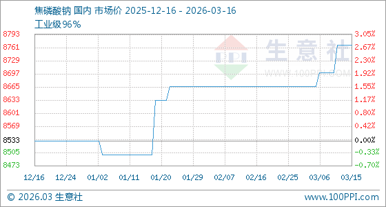 3月16日生意社焦磷酸钠基准价为8766.67元/吨