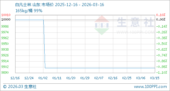 3月16日,生意社白凡士林基准价为9900.00元/吨,与本月初持平。