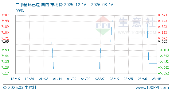 3月16日生意社二甲基环己烷基准价为7133.33元/吨