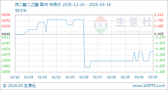 3月16日生意社丙二酸二乙酯基准价为14000.00元/吨