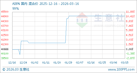3月16日生意社AIBN基准价为45000.00元/吨