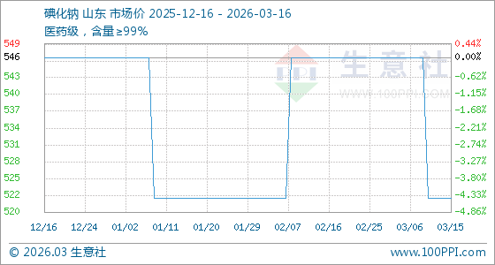 3月16日生意社碘化钠基准价为522.50元/千克