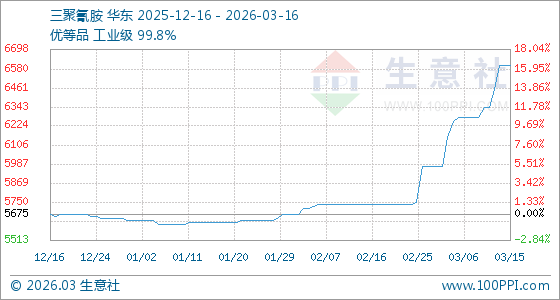 3月16日生意社三聚氰胺基准价为6600.00元/吨