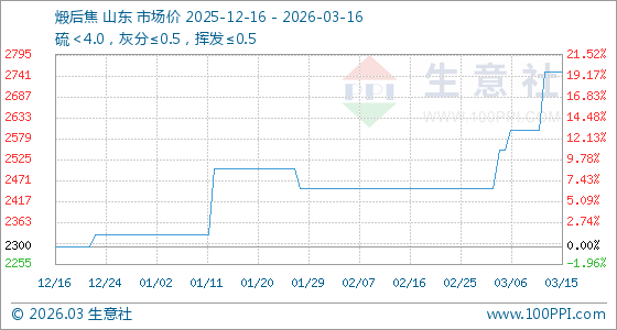 3月16日生意社煅后焦基准价为2750.00元/吨
