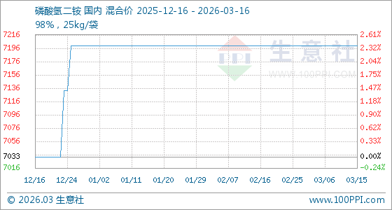 3月16日,生意社磷酸氢二铵基准价为7200.00元/吨,与本月初持平。