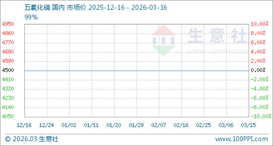 3月16日生意社五氯化磷基准价为4500.00元/吨