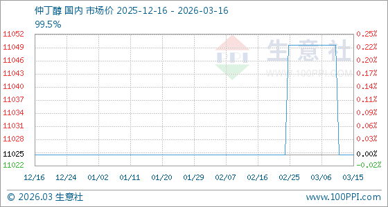 3月16日生意社仲丁醇基准价为11025.00元/吨