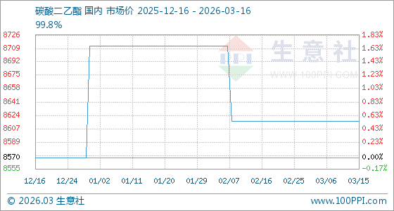 3月16日生意社碳酸二乙酯基准价为8616.67元/吨