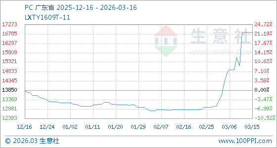 3月16日生意社PC基准价为16866.67元/吨
