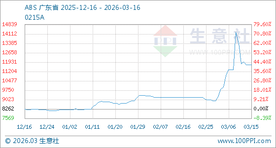 3月16日,生意社ABS基准价为11733.33元/吨,与本月初(8926.67元/吨)相比,上涨了31.44%。
