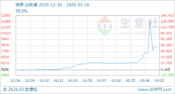 3月16日,生意社纯苯基准价为8270.00元/吨,与本月初(6160.00元/吨)相比,上涨了34.25%。