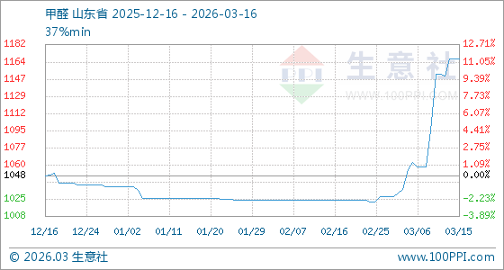 3月16日生意社甲醛基准价为1167.50元/吨