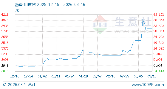 3月16日,生意社沥青基准价为3883.33元/吨,与本月初(3330.00元/吨)相比,上涨了16.62%。