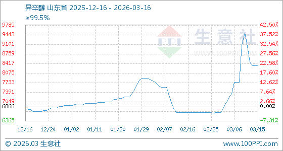 3月16日生意社异辛醇基准价为8333.33元/吨