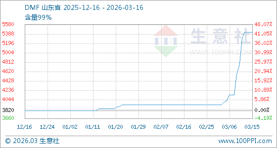 3月16日,生意社DMF基准价为5420.00元/吨,与本月初(3940.00元/吨)相比,上涨了37.56%。