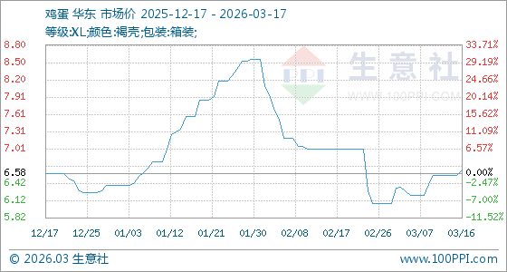 3月17日生意社鸡蛋基准价为6.65元/公斤