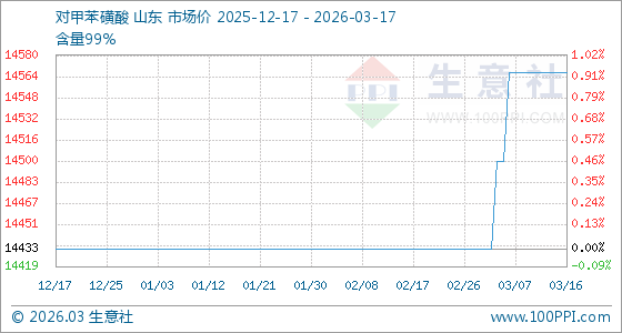 3月17日生意社对甲苯磺酸基准价为14566.67元/吨
