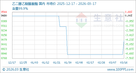 3月17日生意社乙二醇乙醚醋酸酯基准价为9066.67元/吨