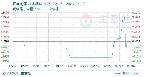 3月17日生意社正庚烷基准价为12970.00元/吨