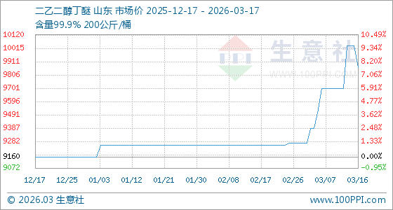 3月17日生意社二乙二醇丁醚基准价为9866.67元/吨