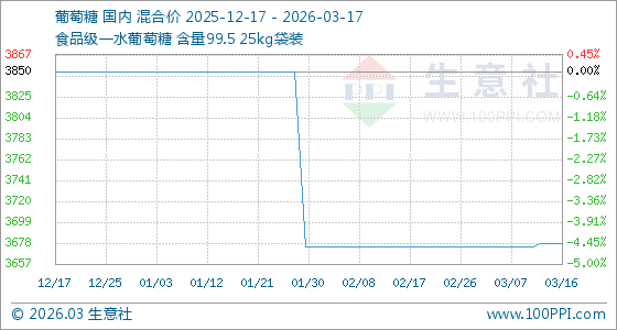 3月17日生意社葡萄糖基准价为3677.50元/吨