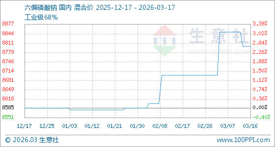 3月17日生意社六偏磷酸钠基准价为8800.00元/吨