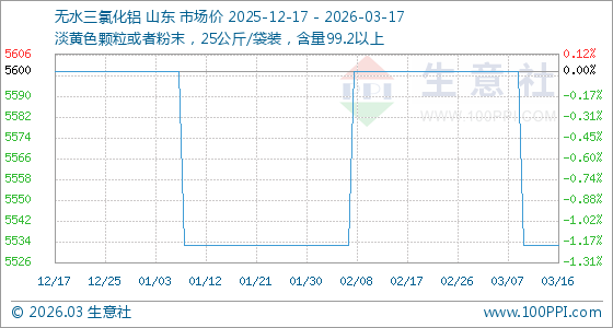 3月17日生意社无水三氯化铝基准价为5533.33元/吨