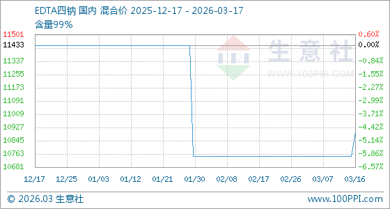 3月17日生意社EDTA四钠基准价为10900.00元/吨