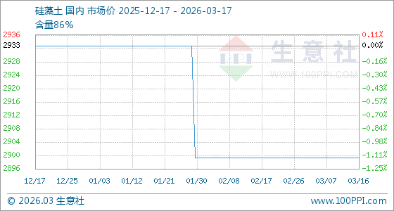 3月17日,生意社硅藻土基准价为2900.00元/吨,与本月初持平。