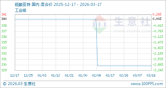 3月17日生意社硫酸亚铁基准价为330.00元/吨