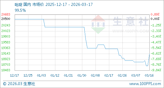 3月17日生意社吡啶基准价为19142.86元/吨