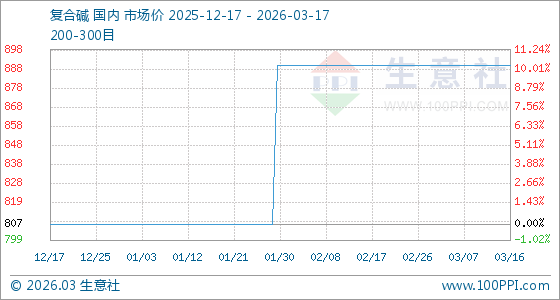 3月17日,生意社复合碱基准价为890.00元/吨,与本月初持平。