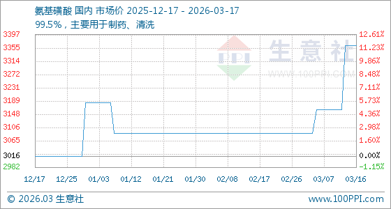 3月17日生意社氨基磺酸基准价为3362.50元/吨