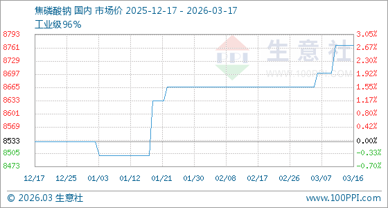 3月17日生意社焦磷酸钠基准价为8766.67元/吨