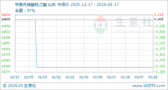 3月17日生意社甲基丙烯酸羟乙酯基准价为14300.00元/吨