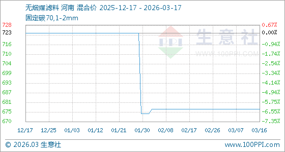 3月17日生意社无烟煤滤料基准价为677.50元/吨