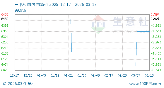 3月17日生意社三甲苯基准价为6350.00元/吨