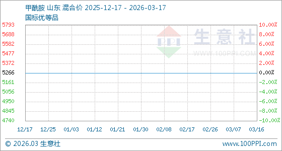 3月17日,生意社甲酰胺基准价为5266.67元/吨,与本月初持平。