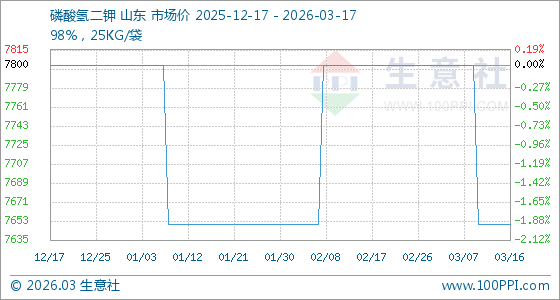 3月17日生意社磷酸氢二钾基准价为7650.00元/吨